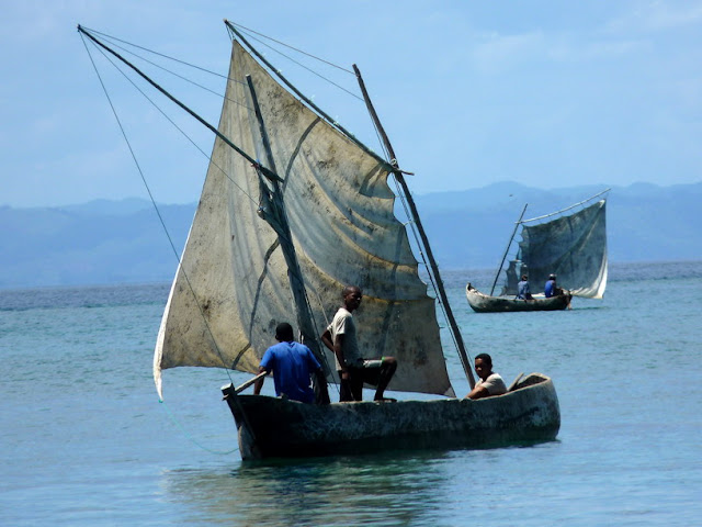 Durante nuestra estancia en Madagascar no vemos grandes mercantes, ni enormes barcos de pesca. Todo se reduce a pequeñas embarcaciones que diariamente salen a faenar.Desde pequeños, con pocos medios y mucha imaginación se preparan para convertirse en grandes marineros.